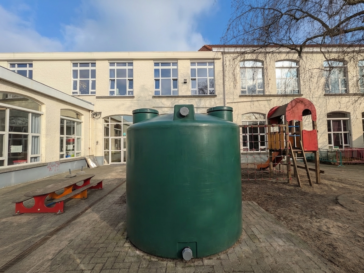 De volledige grote regenwaterput voor onze kleuterspeelplaatsen.